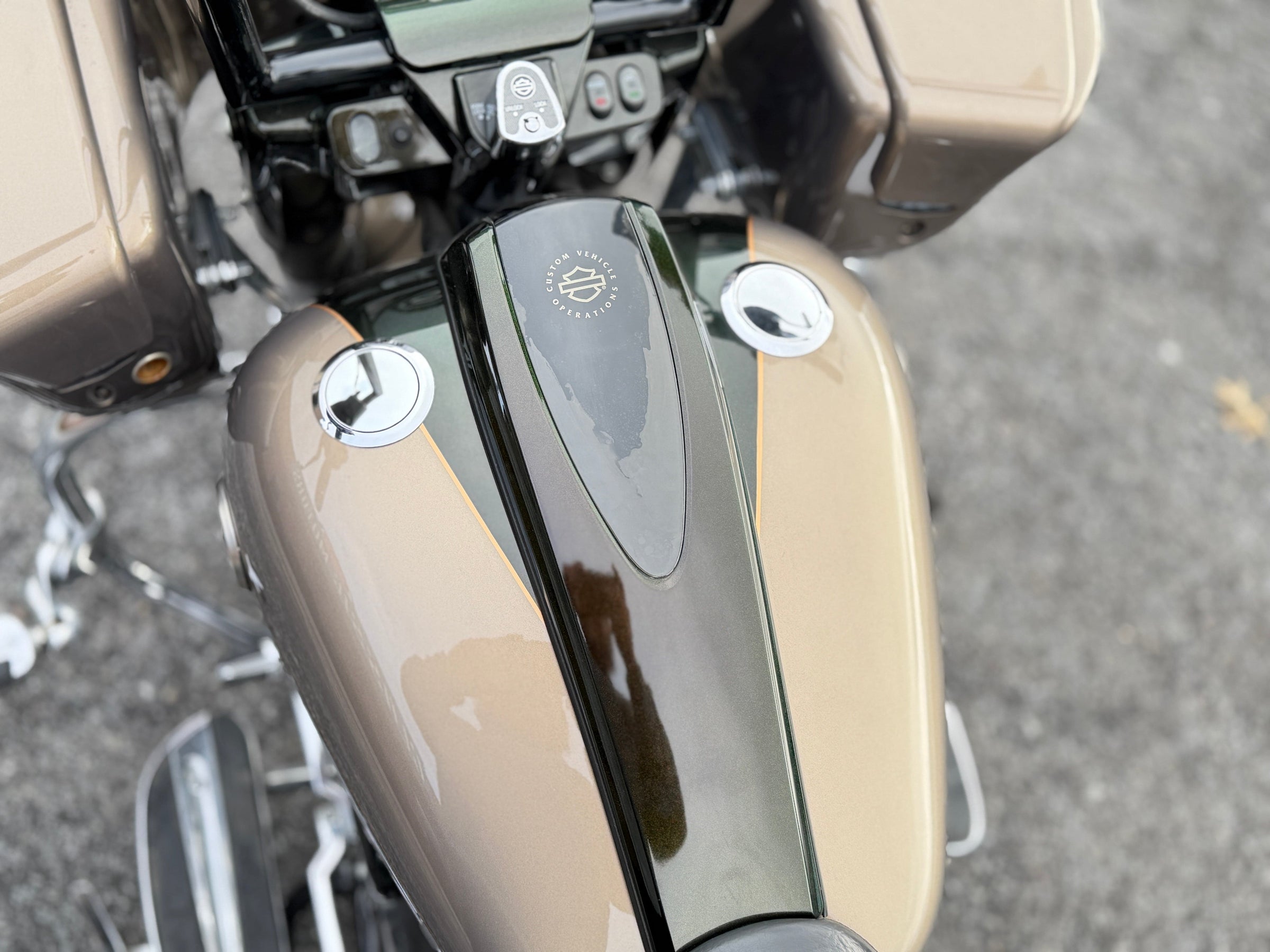 110"/1802cc Screamin' Eagle Twin-Cam Engine. 6-Speed Transmission. Roman Gold/Burnt Emerald with Edge Graphics. One owner. Clean Carfax. Only 33,610 Miles.