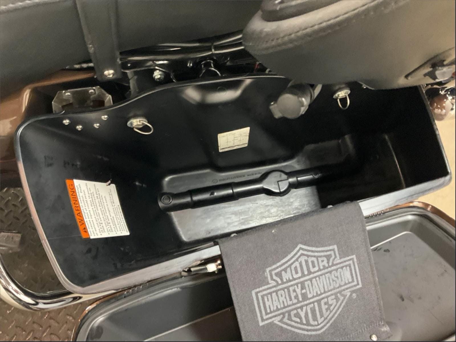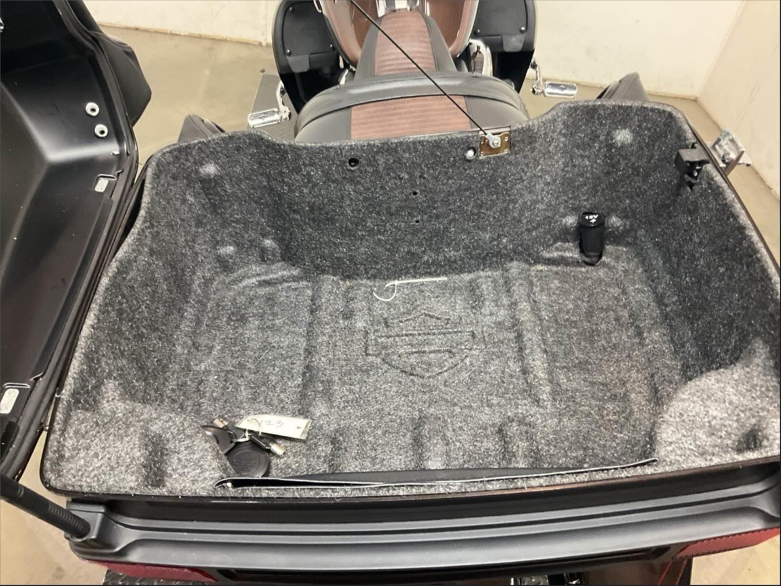 Injection Molded hard Tour-Pak with soft luggage liners, storage pockets, wrap-around rear tail/brake lights and 12-volt, 15 amp power supply; 2.26 cu. ft. volume
