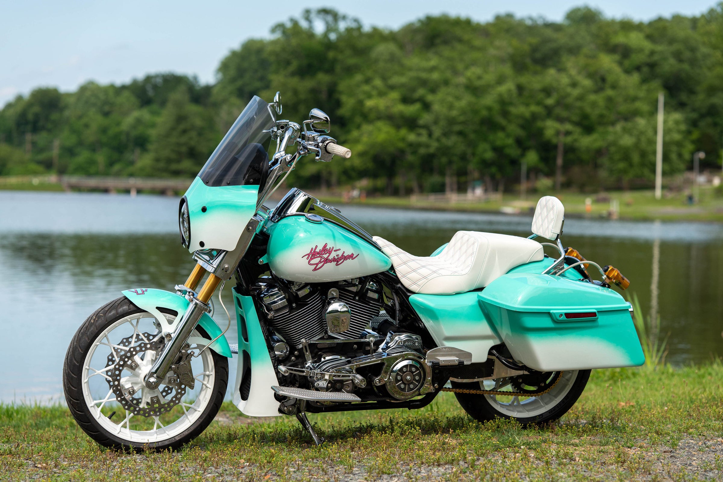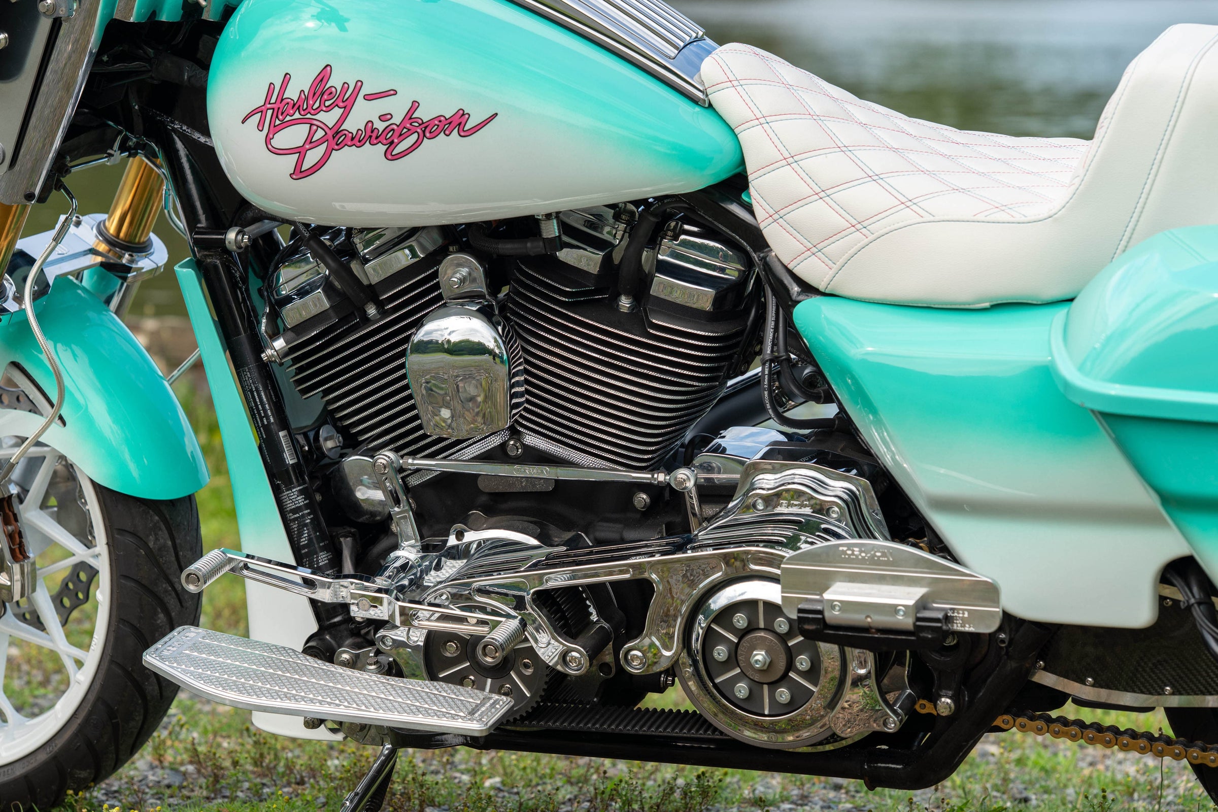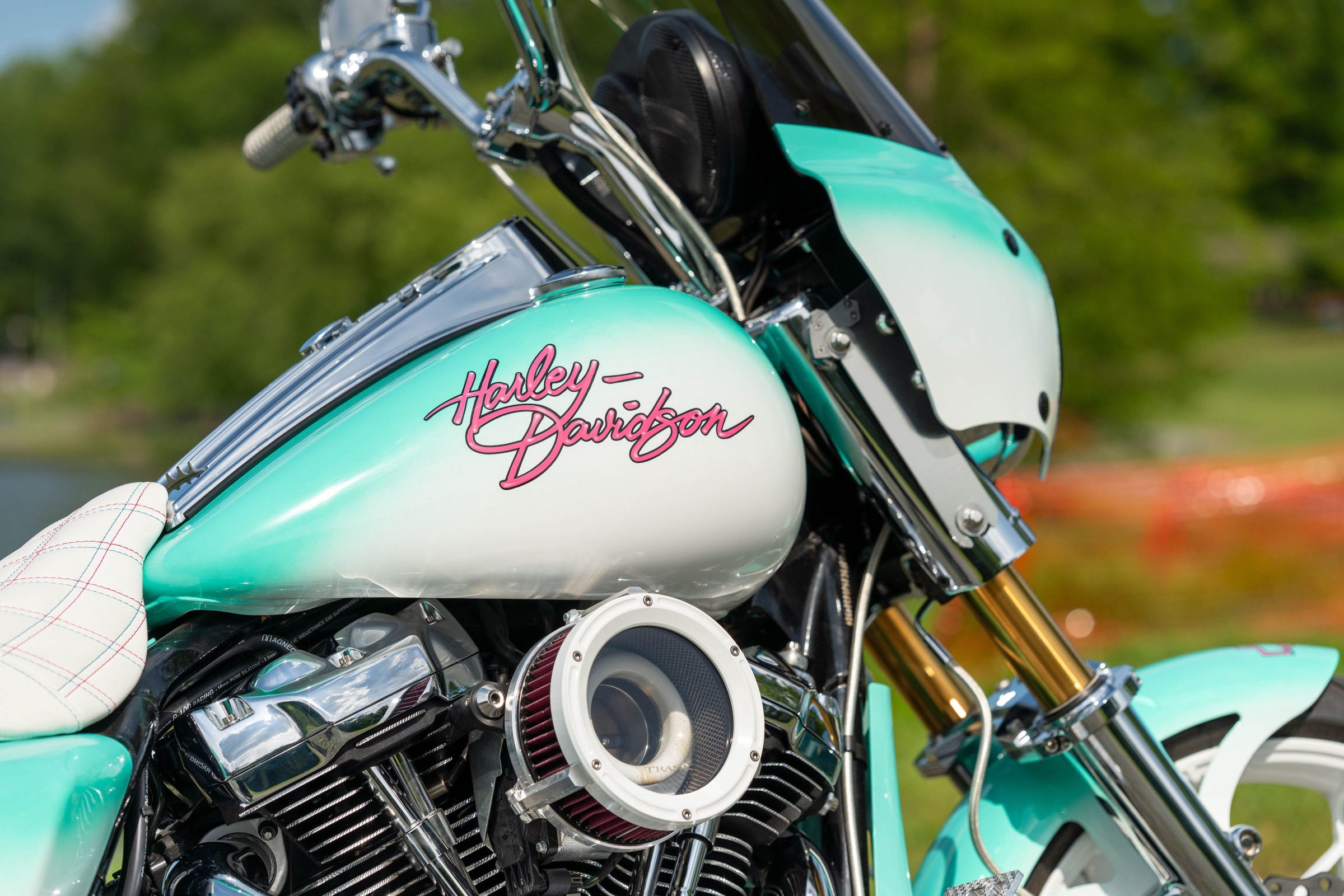 124"/2031cc Milwaukee 8 Engine. 6-Speed Transmission. Custom Turquoise to White Fade Miami Vice Paint. 29,296 Miles, Less than 500 miles on completely rebuilt engine. Clean CARFAX!