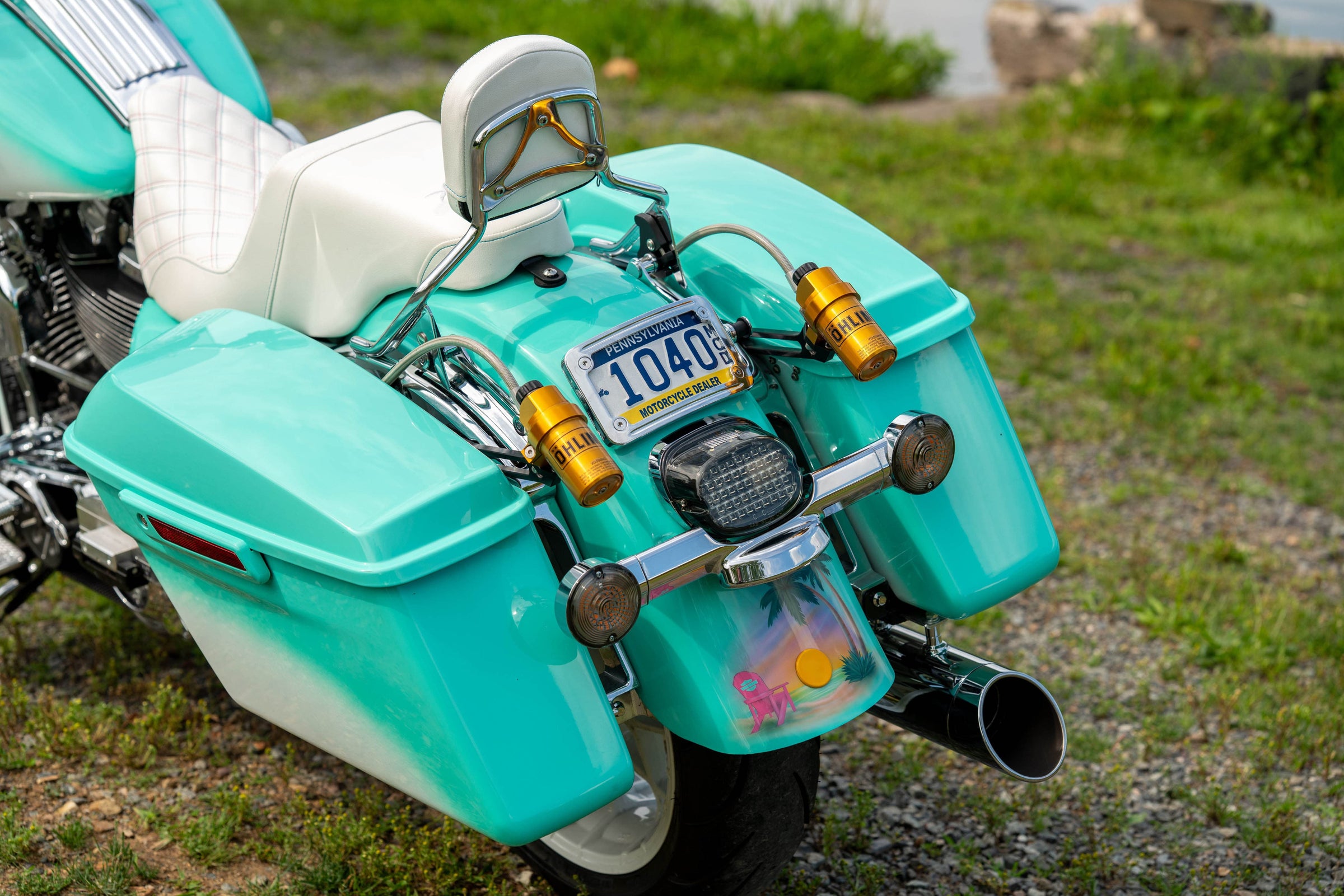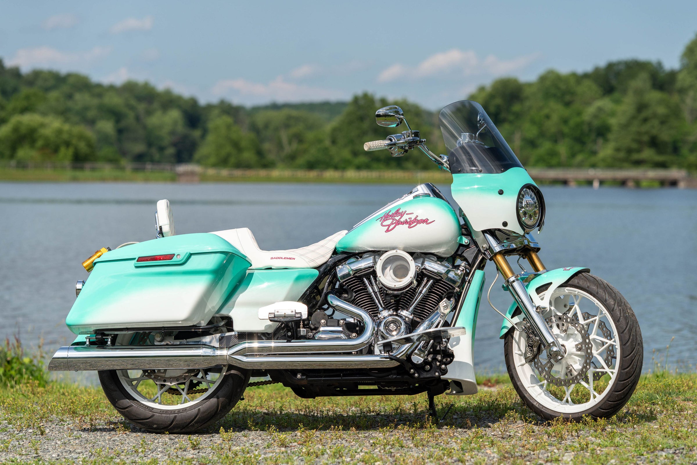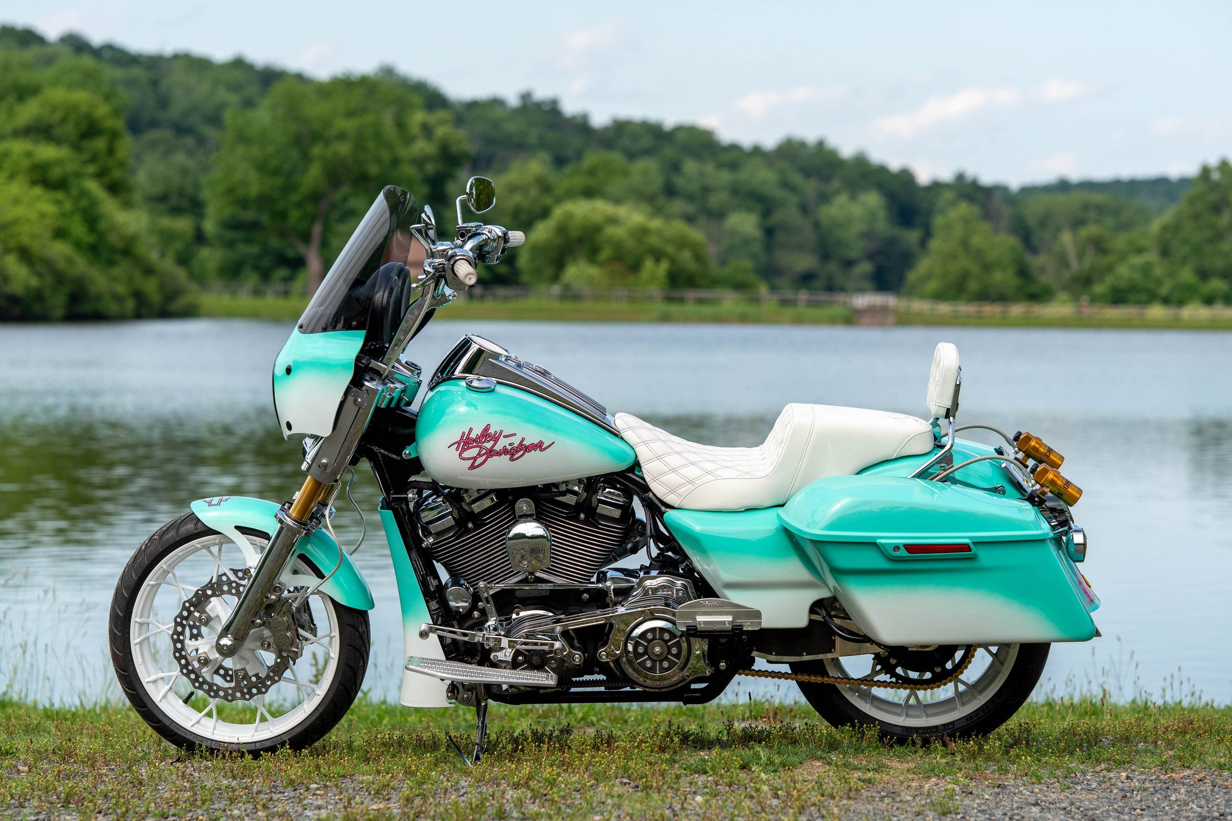 124"/2031cc Milwaukee 8 Engine. 6-Speed Transmission. Custom Turquoise to White Fade Miami Vice Paint. 29,296 Miles, Less than 500 miles on completely rebuilt engine. Clean CARFAX!