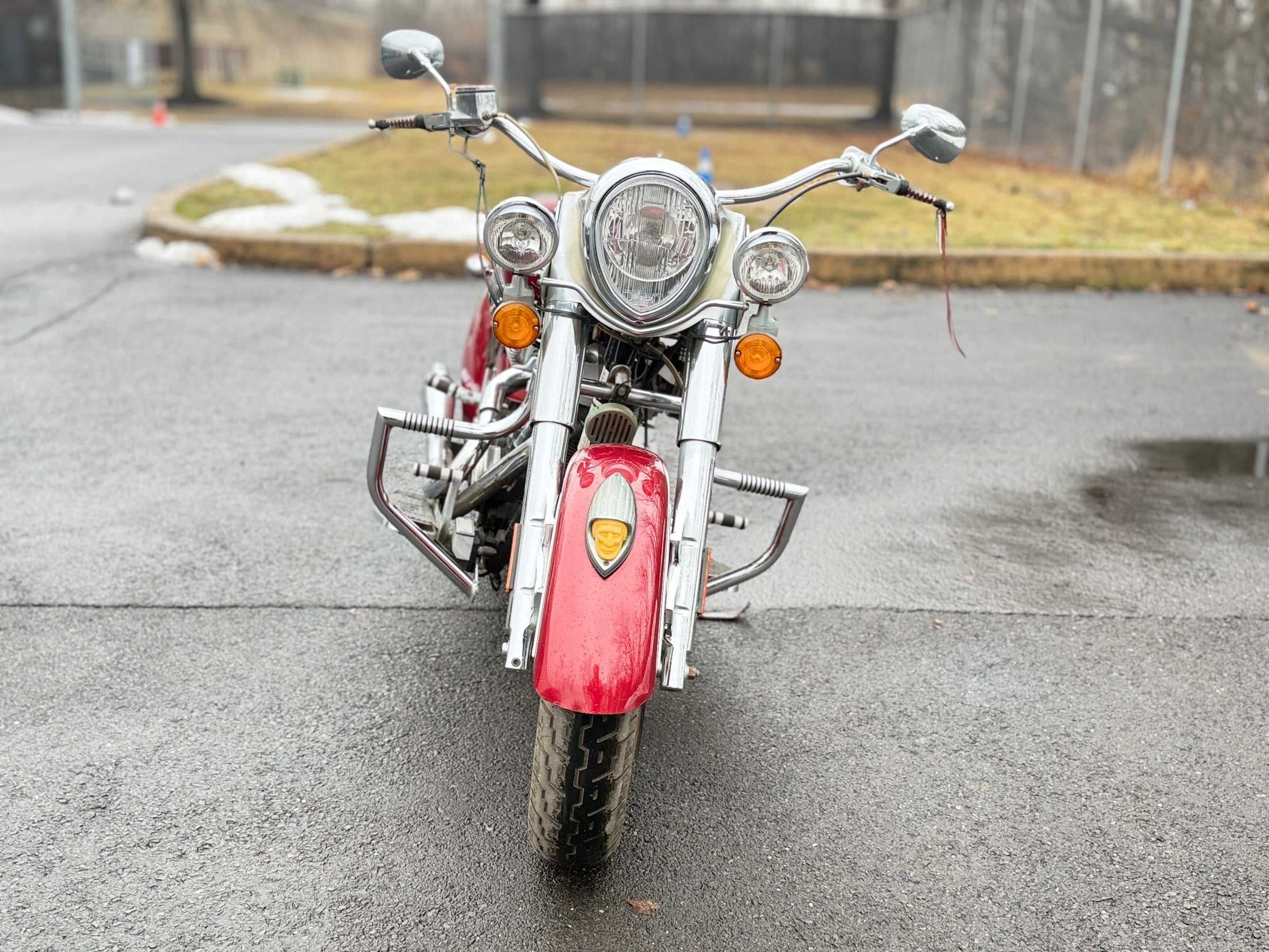 Motor V-Twin Power Plus de 100"/1638 cc. Transmisión de 5 velocidades. Pintura roja india y cuero color canela. 28 488 millas.