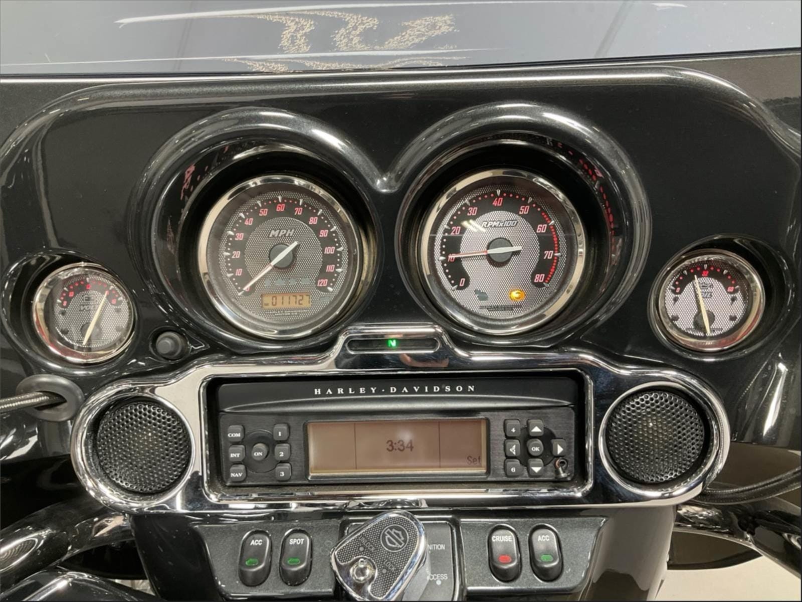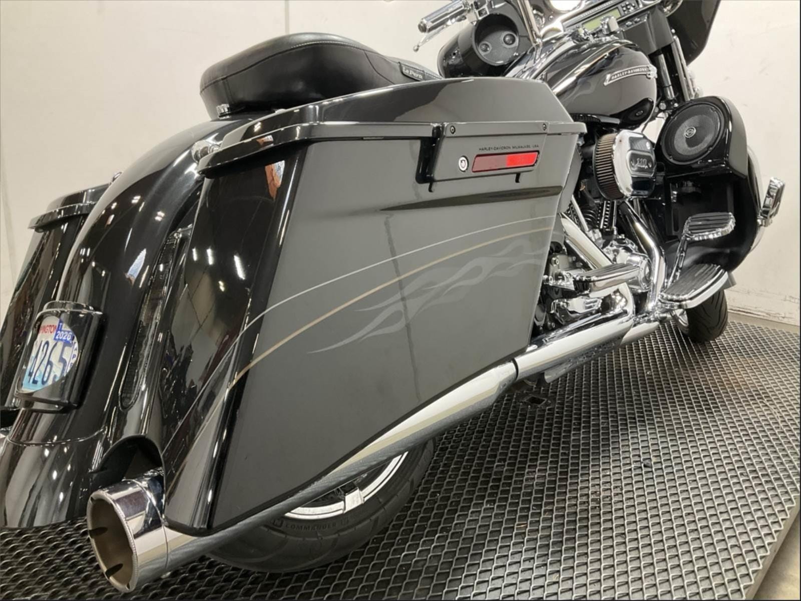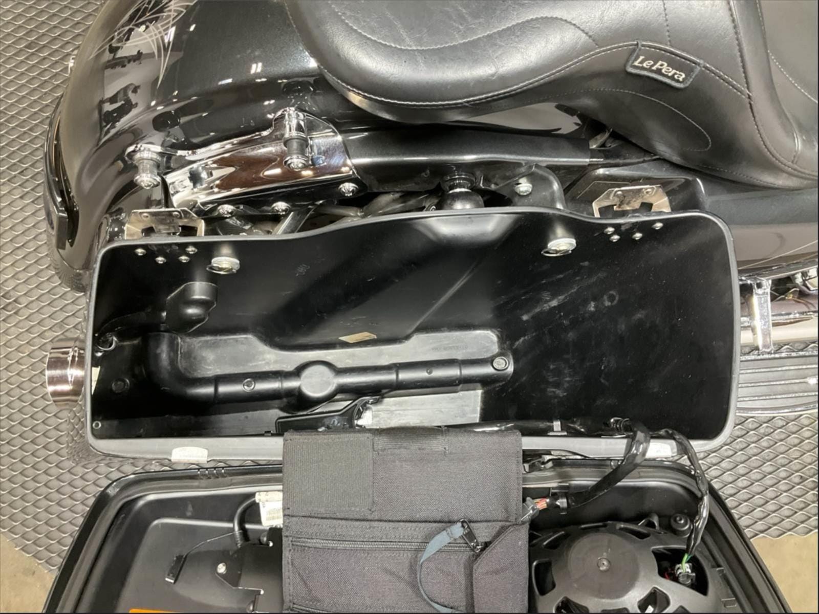 Saddlebag lids molded to hold custom 5-inch x 7-inch speakers with bridged tweeters