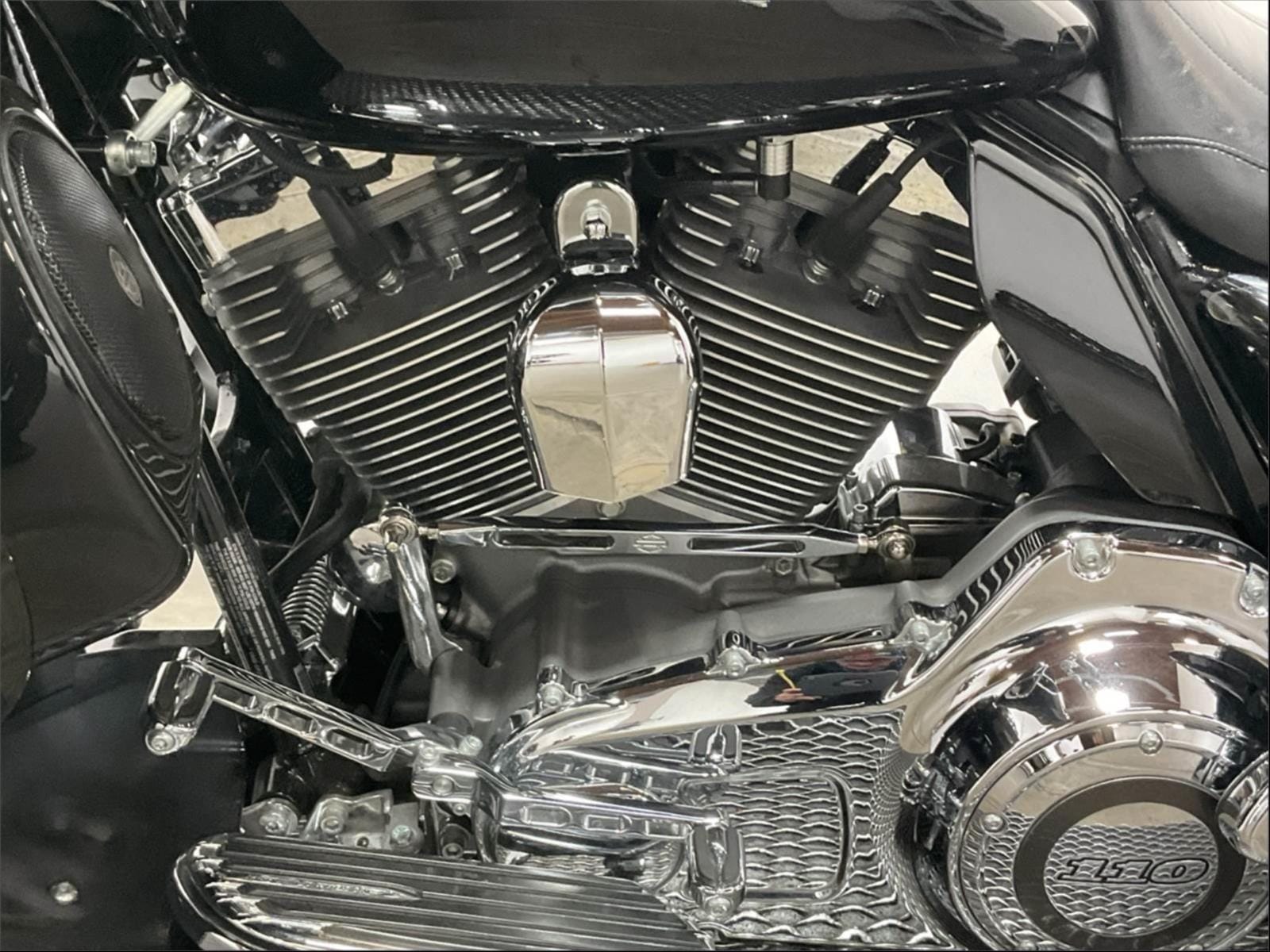 Twin Cam 110™ granite powder-coated powertrain with 110 Screamin’ Eagle® identifiers on cylinder heads