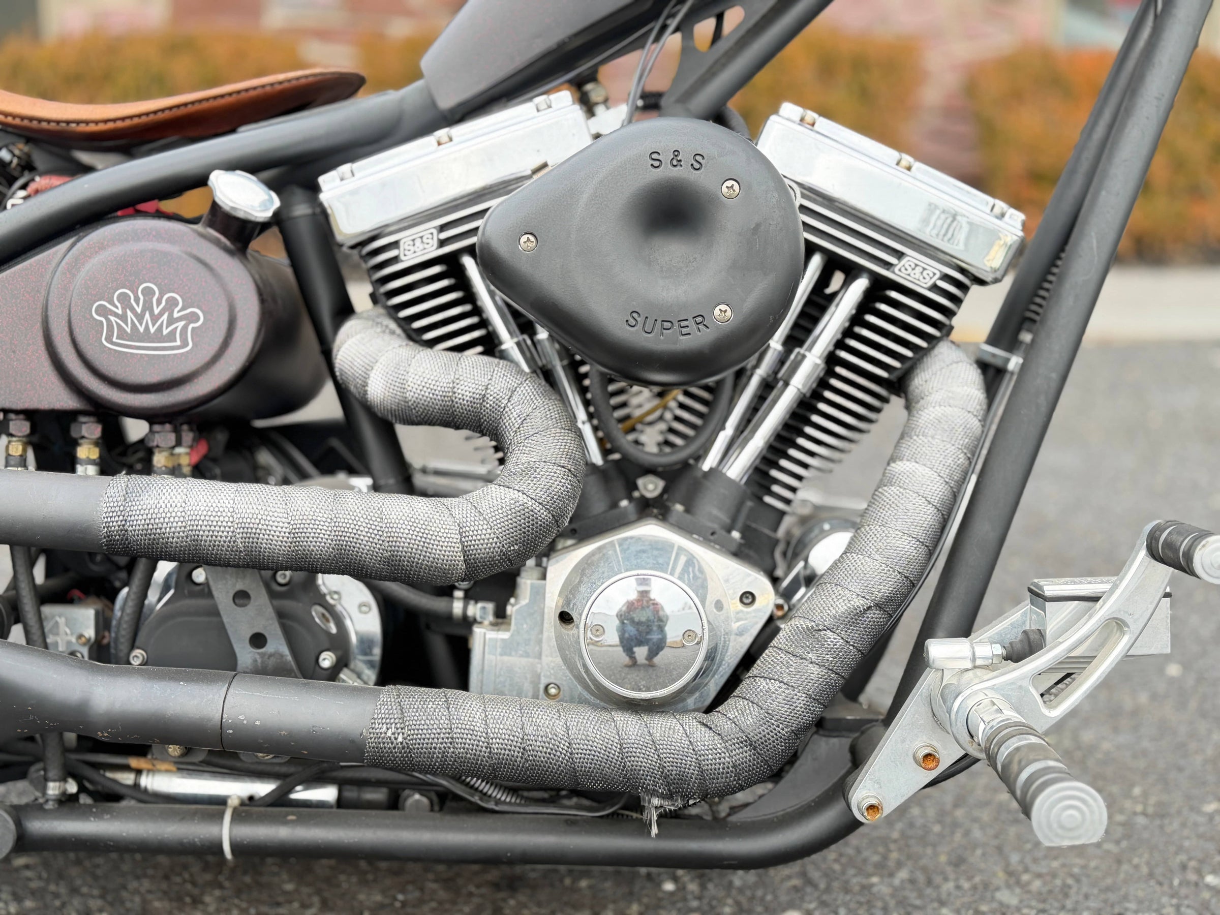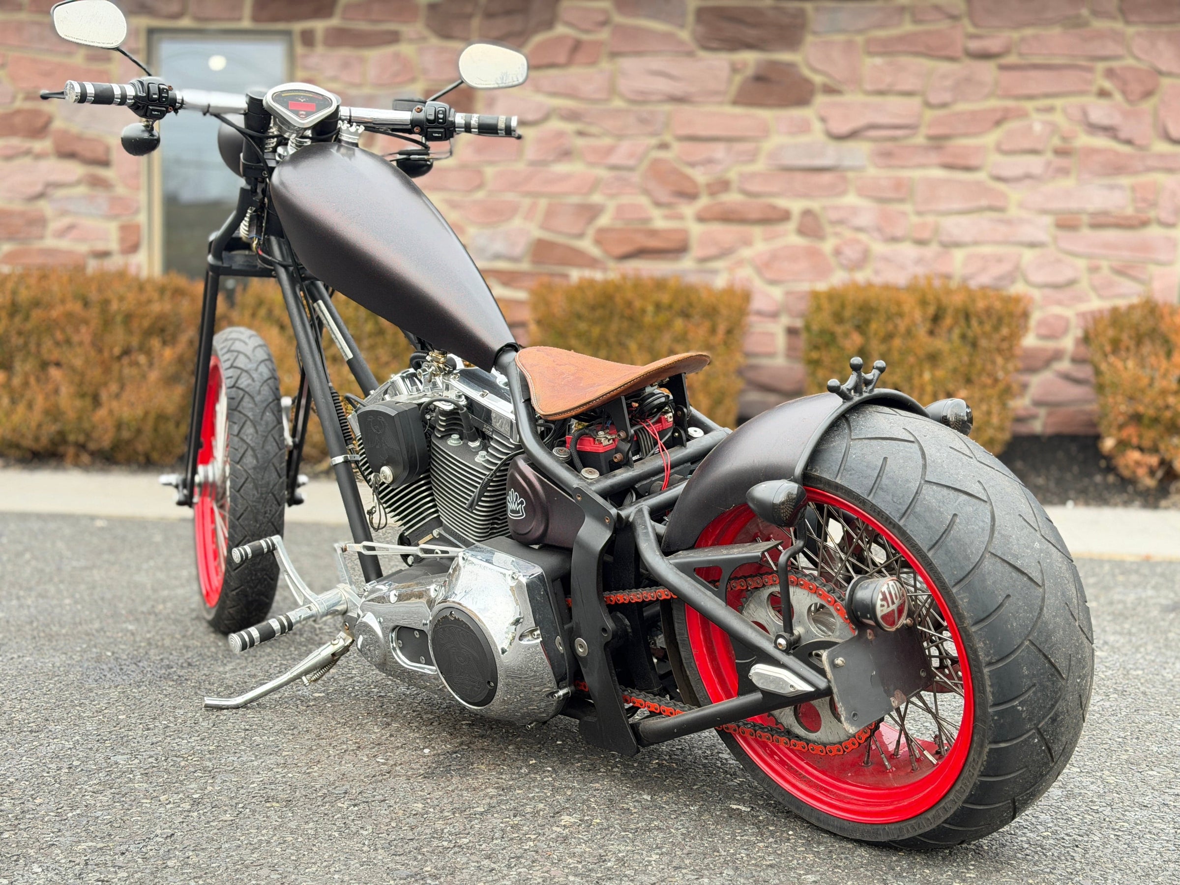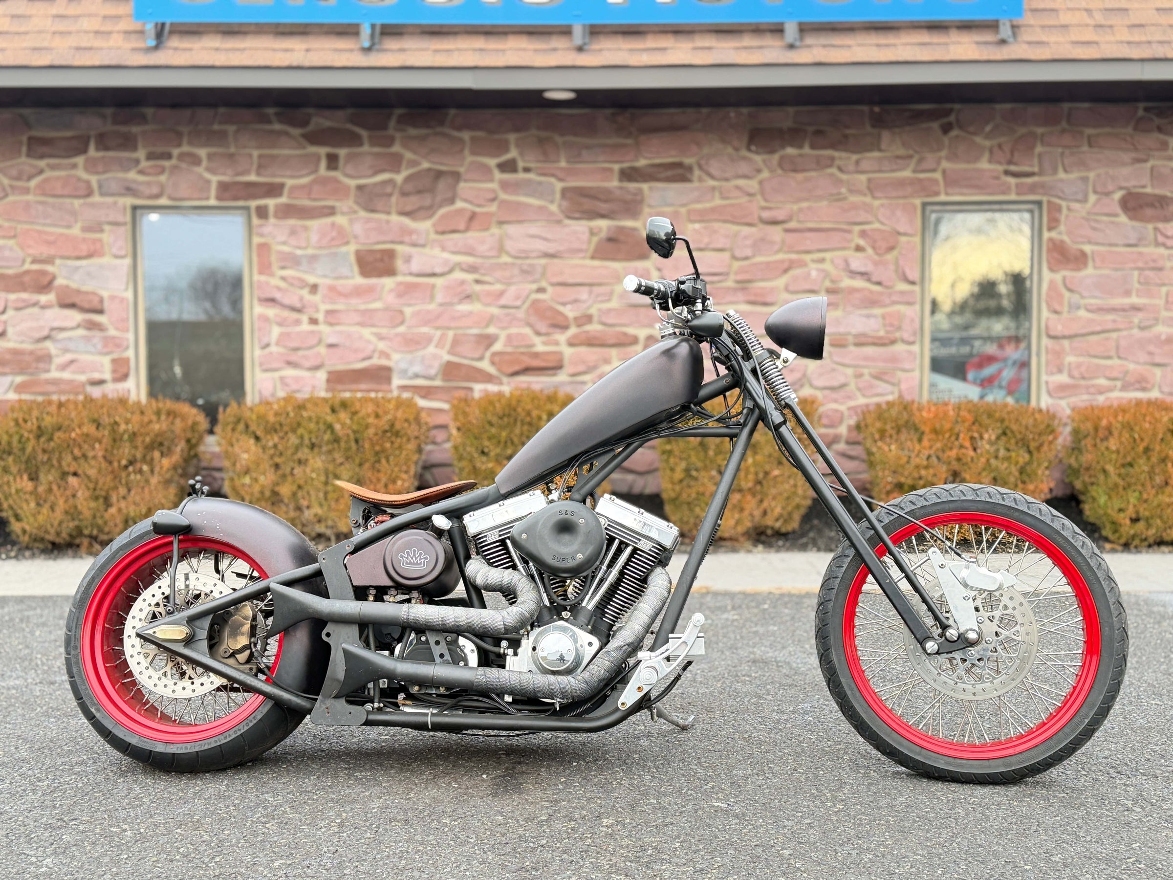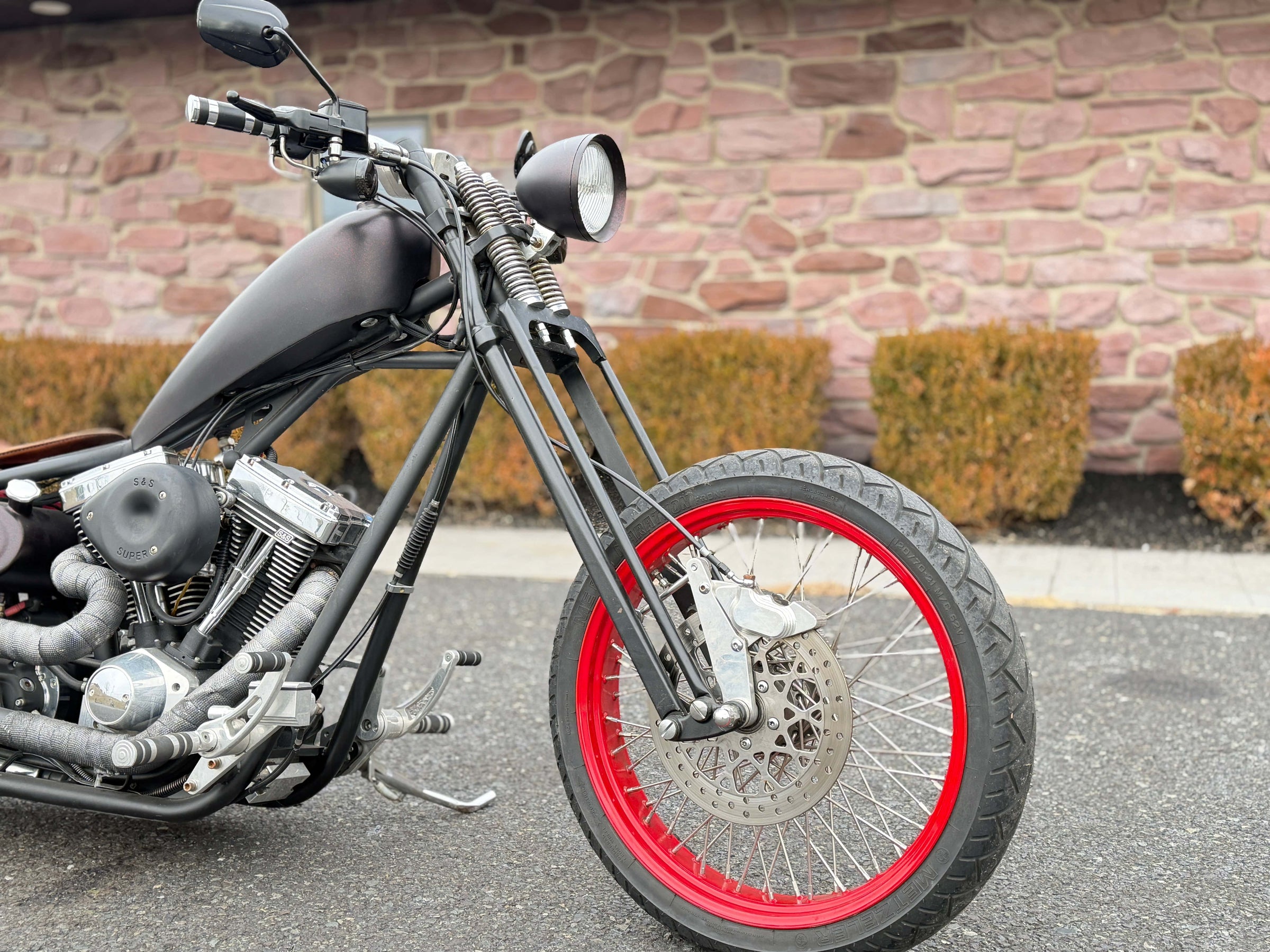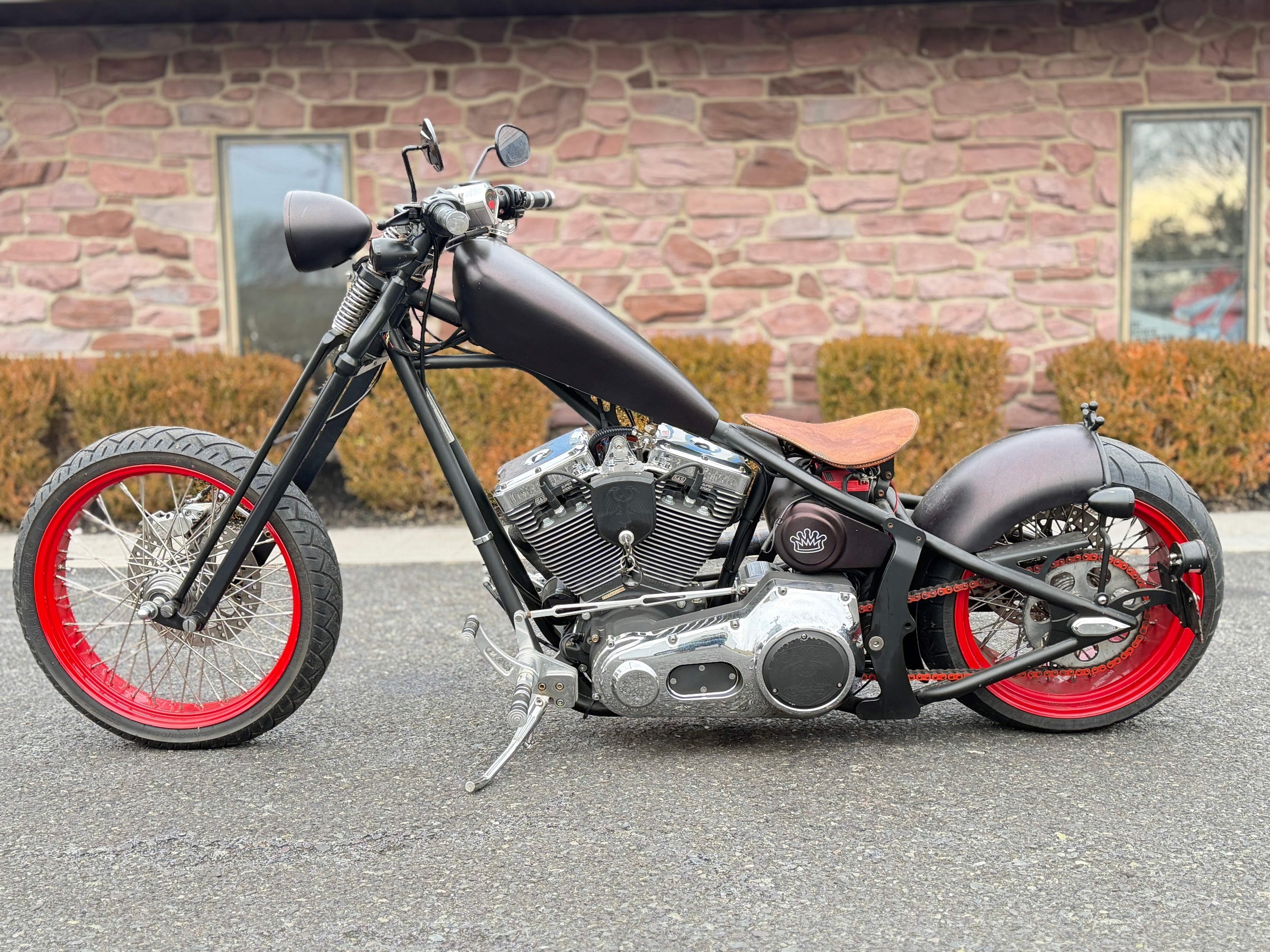 Motor S&S Evolution de 96". Transmisión de 6 velocidades. Pintura burdeos personalizada.