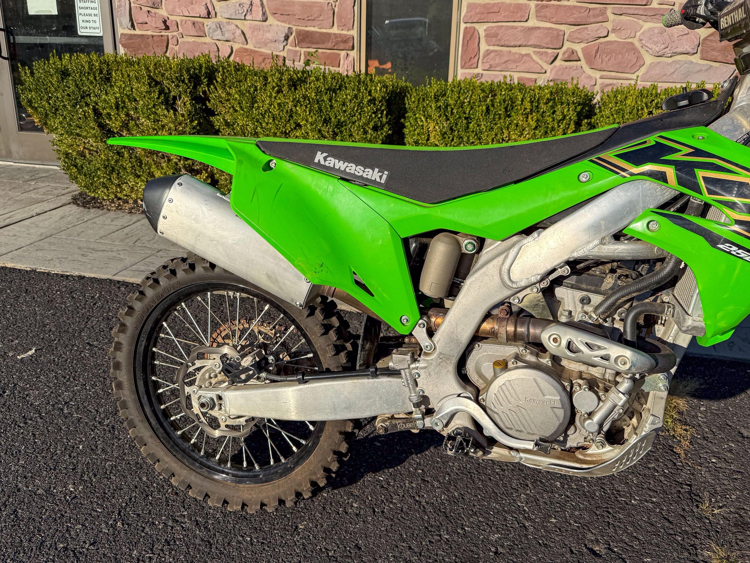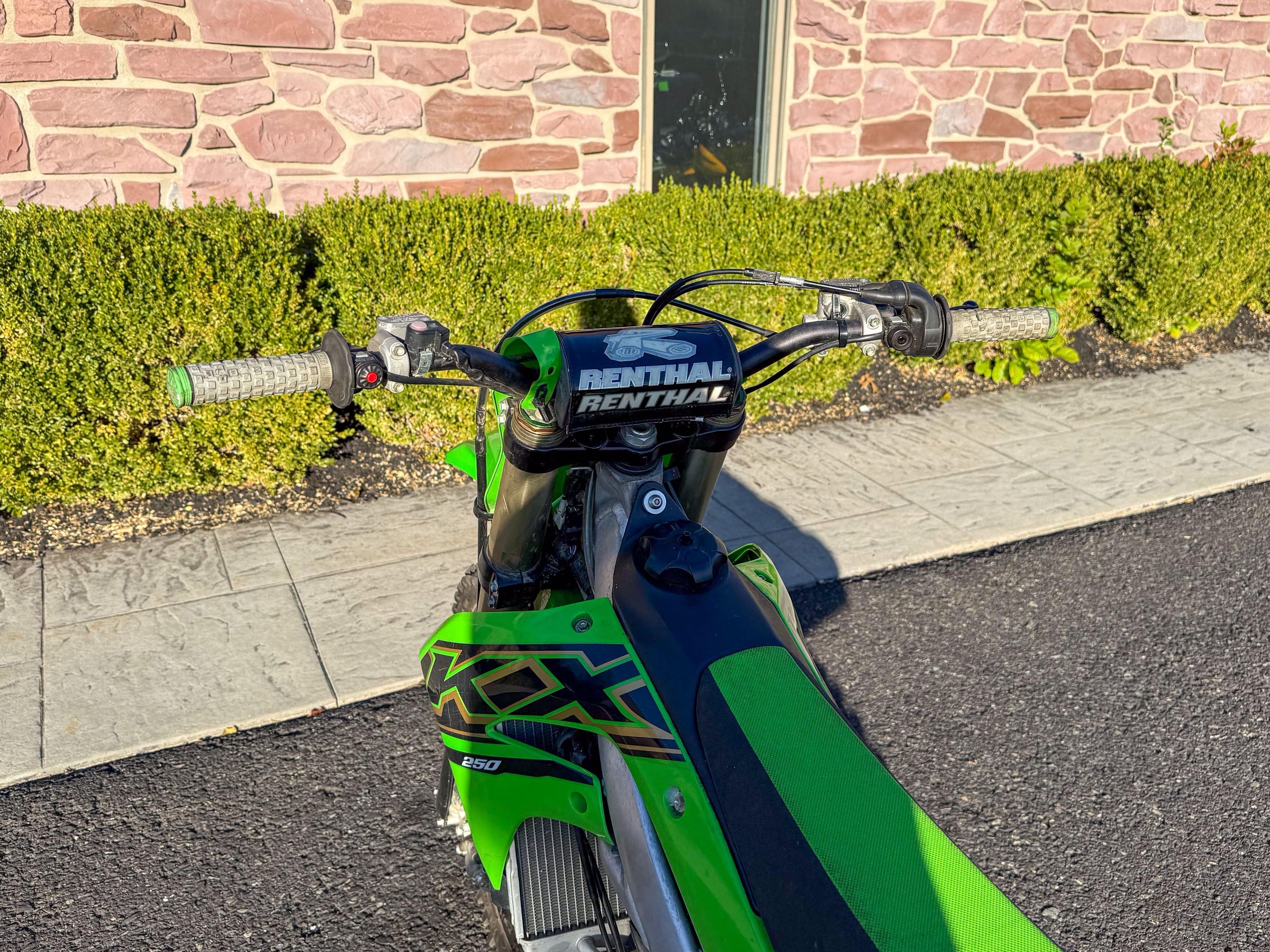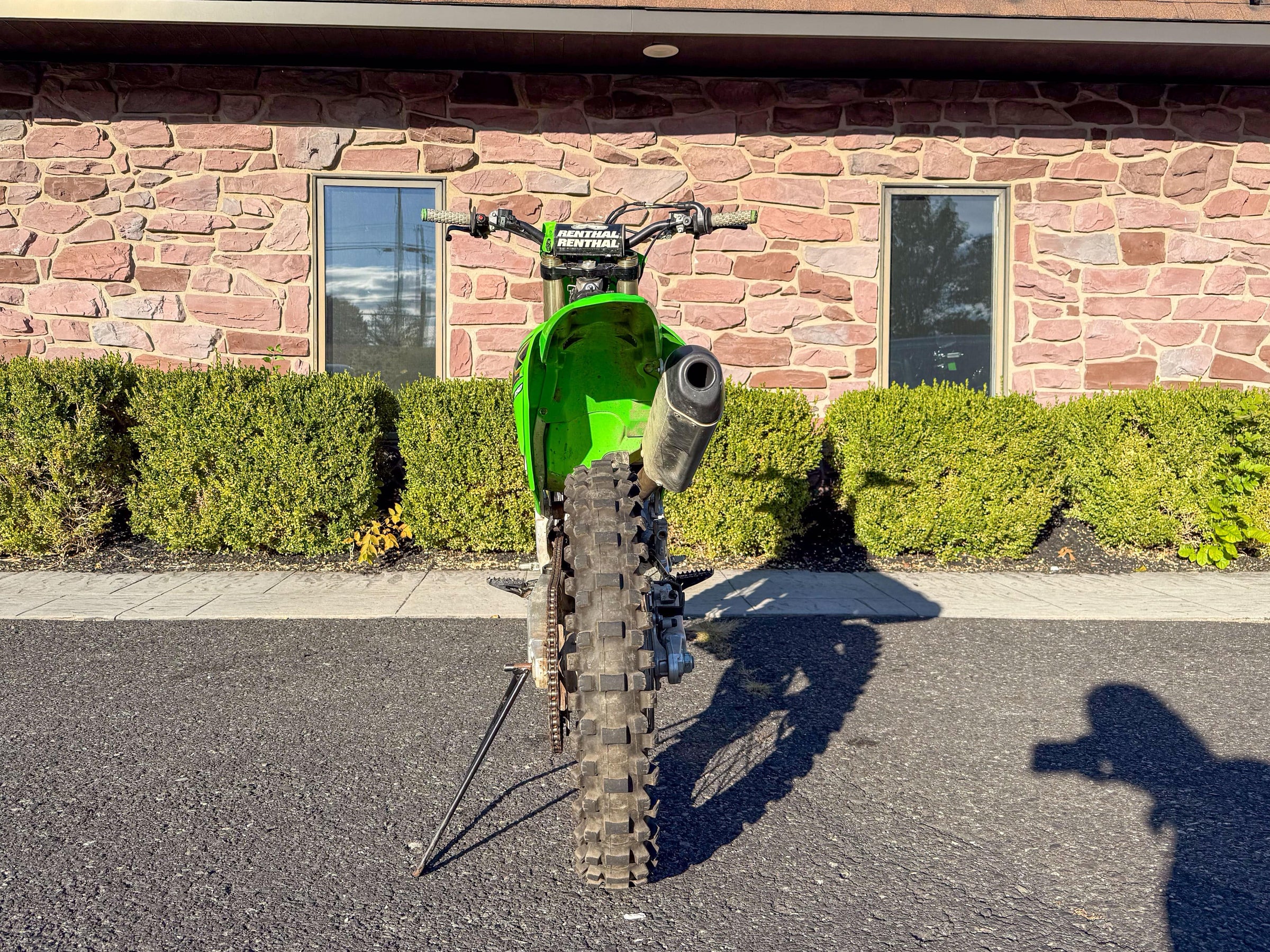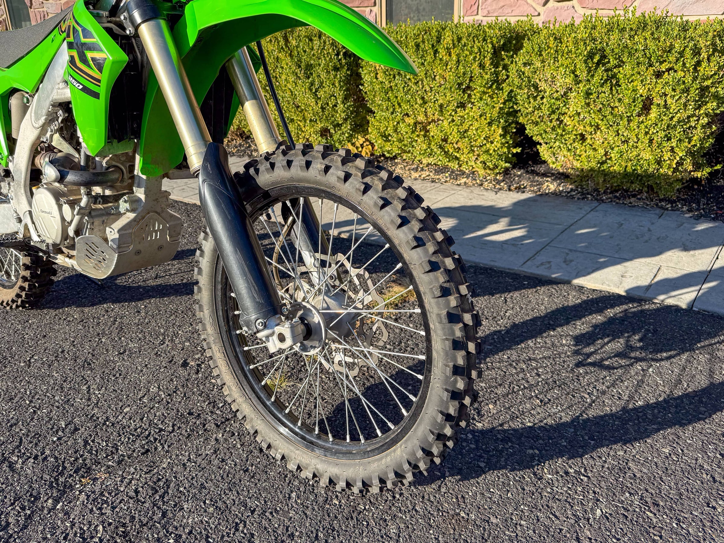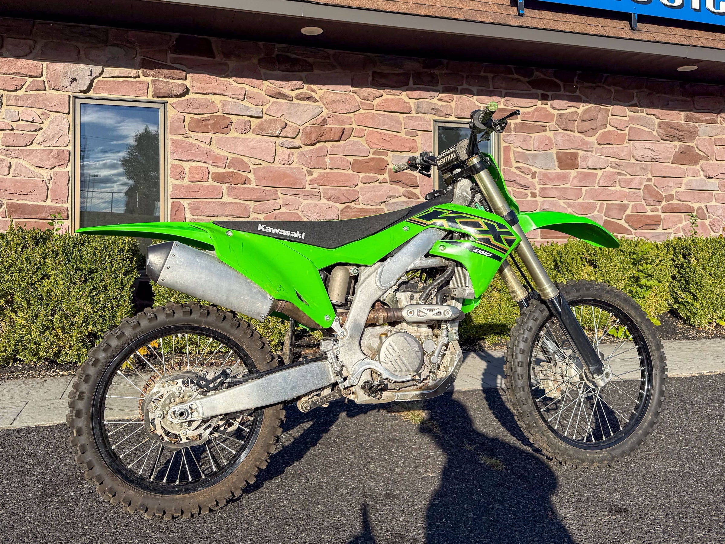 Motor monocilíndrico de cuatro tiempos, refrigerado por líquido, 449 cc, OHC. Transmisión de 6 velocidades. Plásticos rojos y azules. 5186 millas.