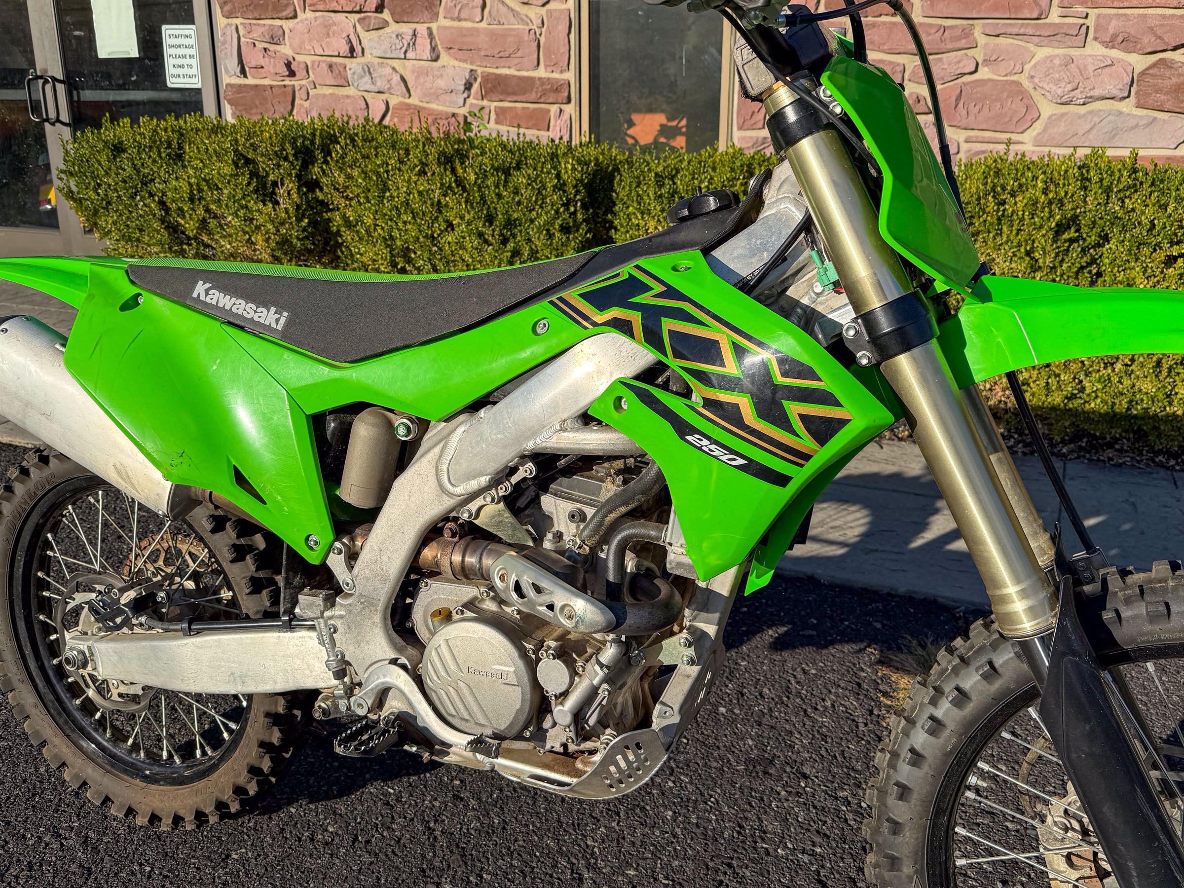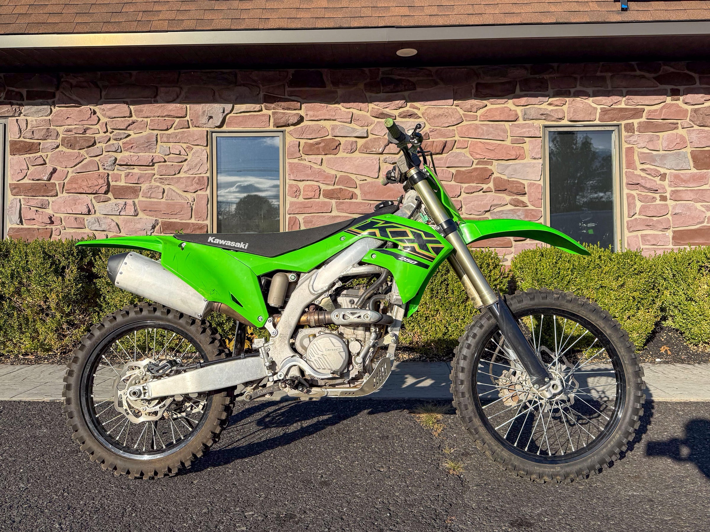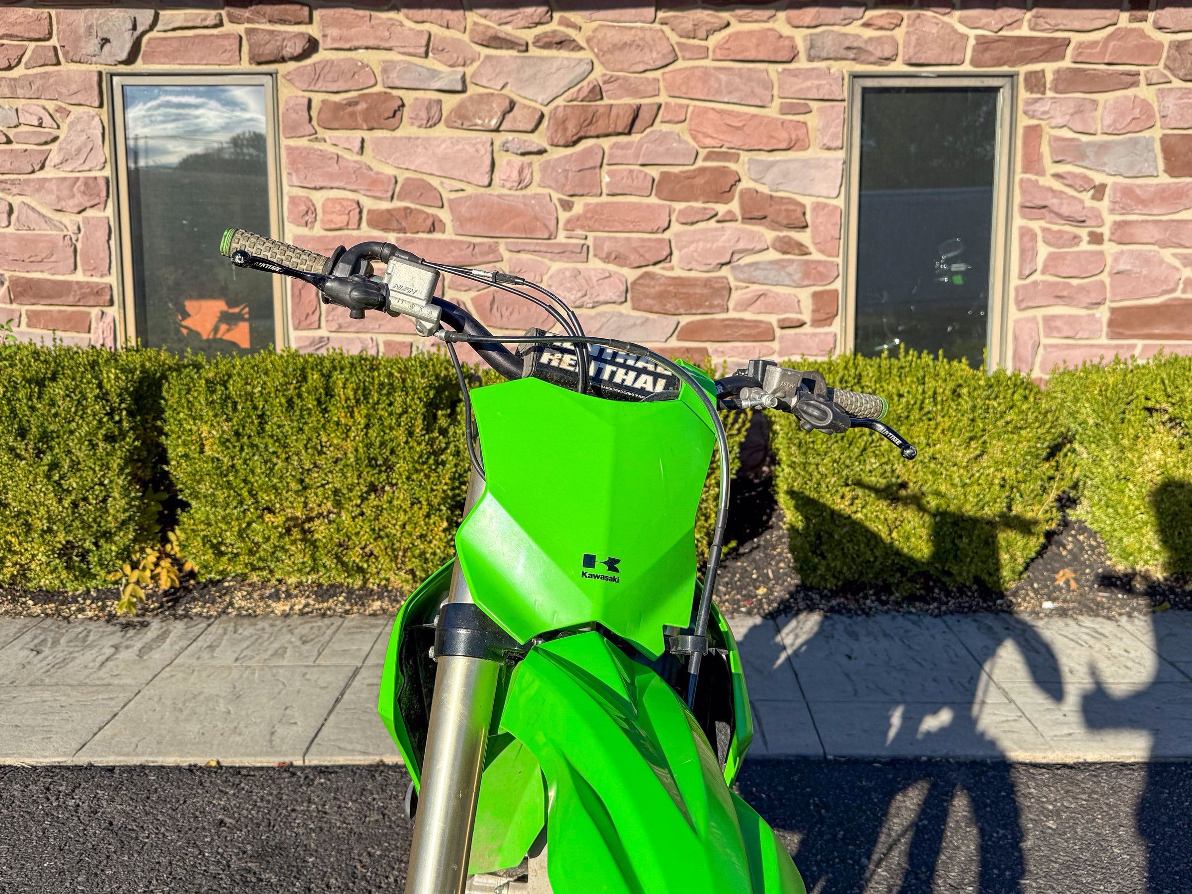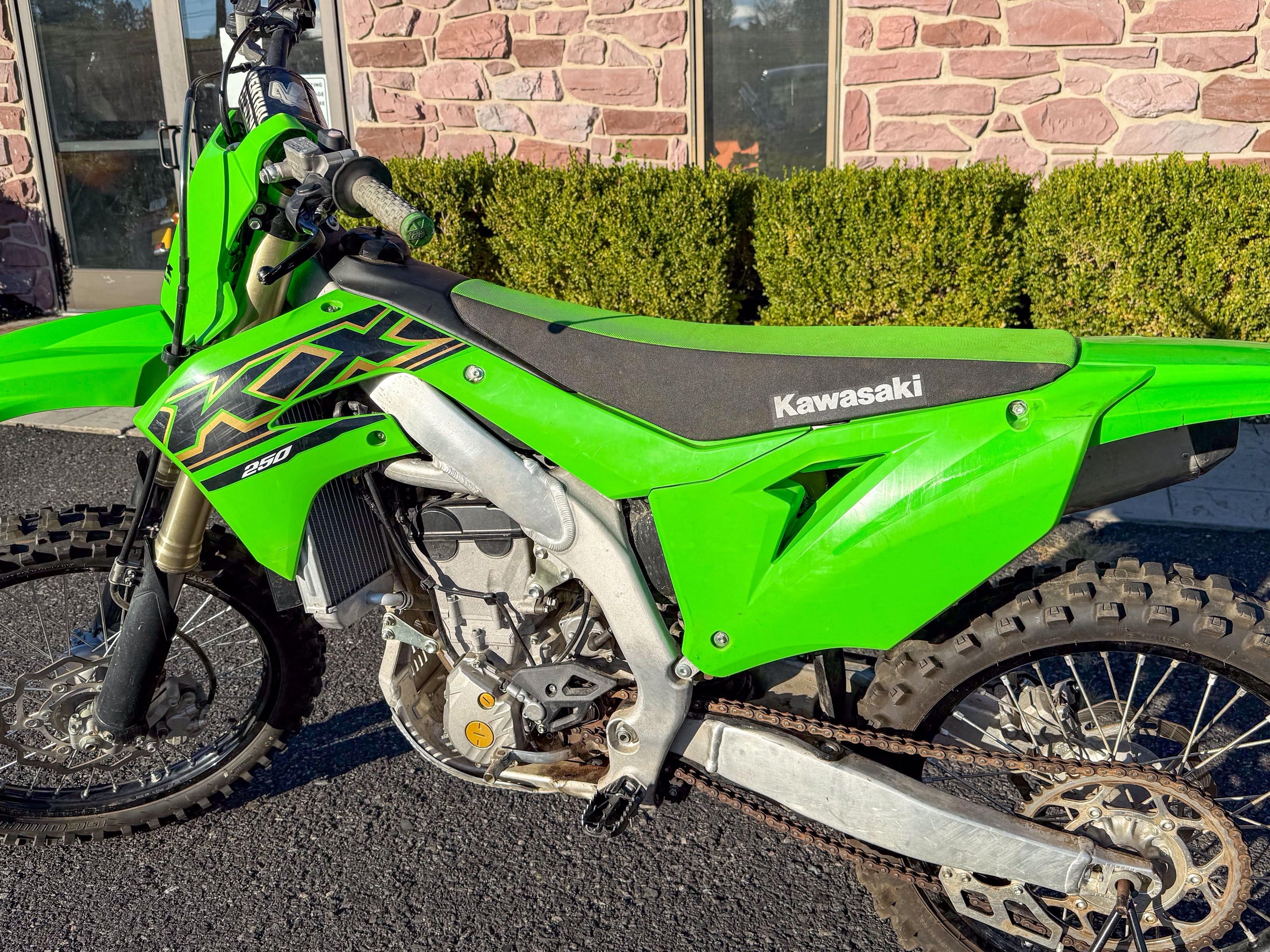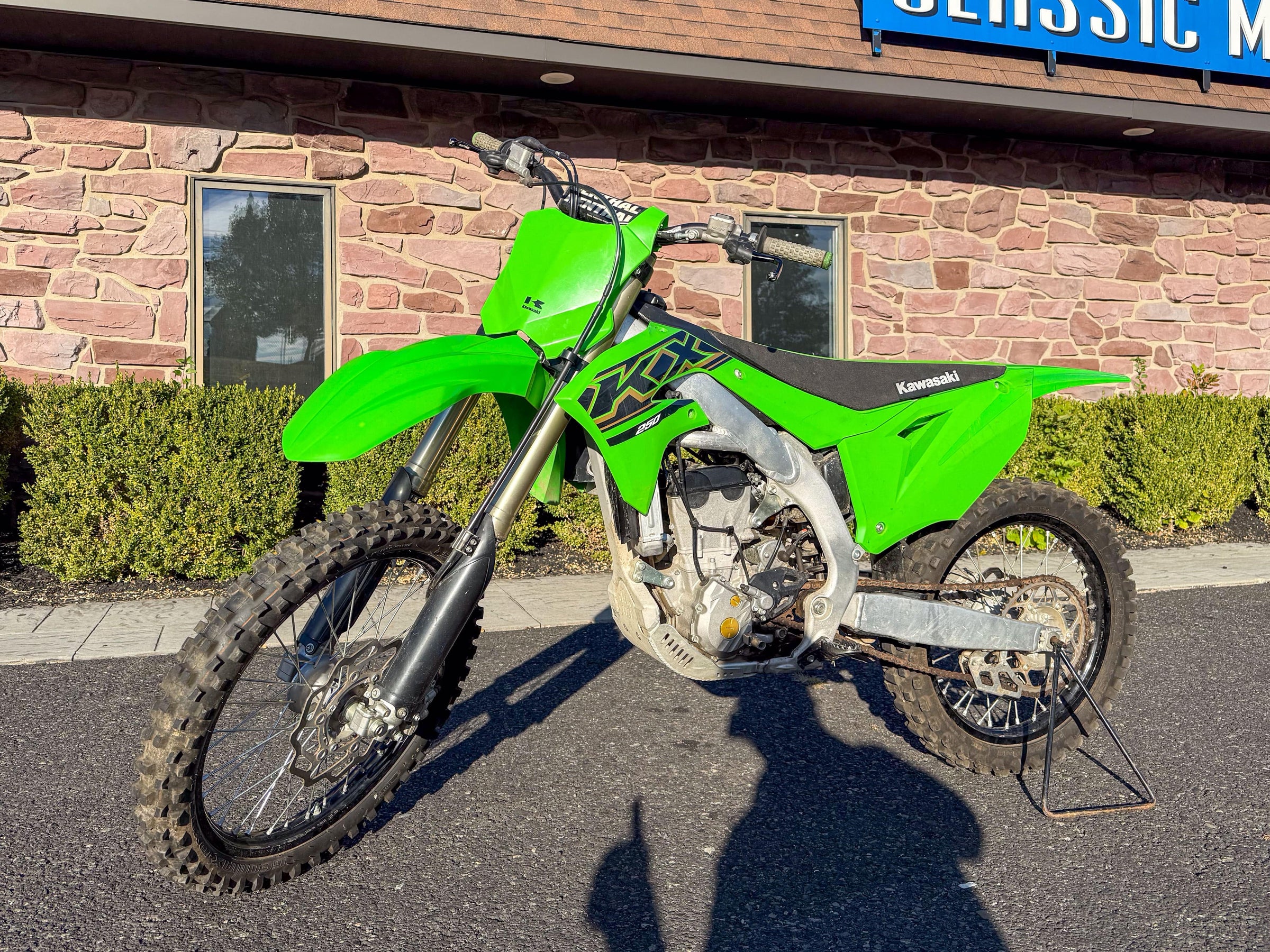 Motor monocilíndrico de cuatro tiempos, refrigerado por líquido, 449 cc, OHC. Transmisión de 6 velocidades. Plásticos rojos y azules. 5186 millas.