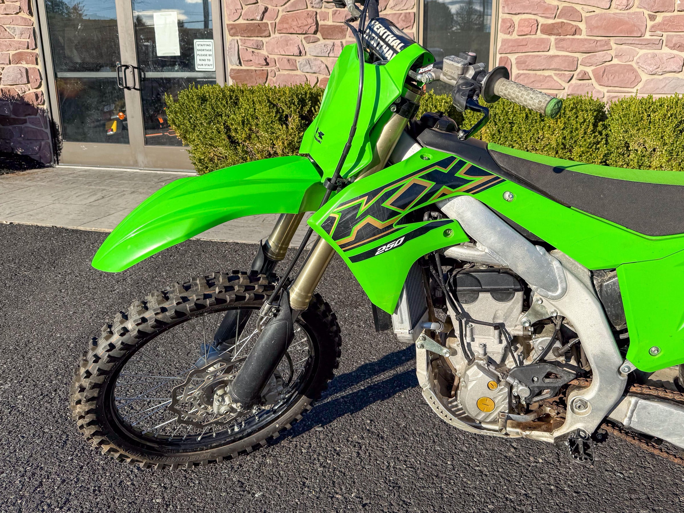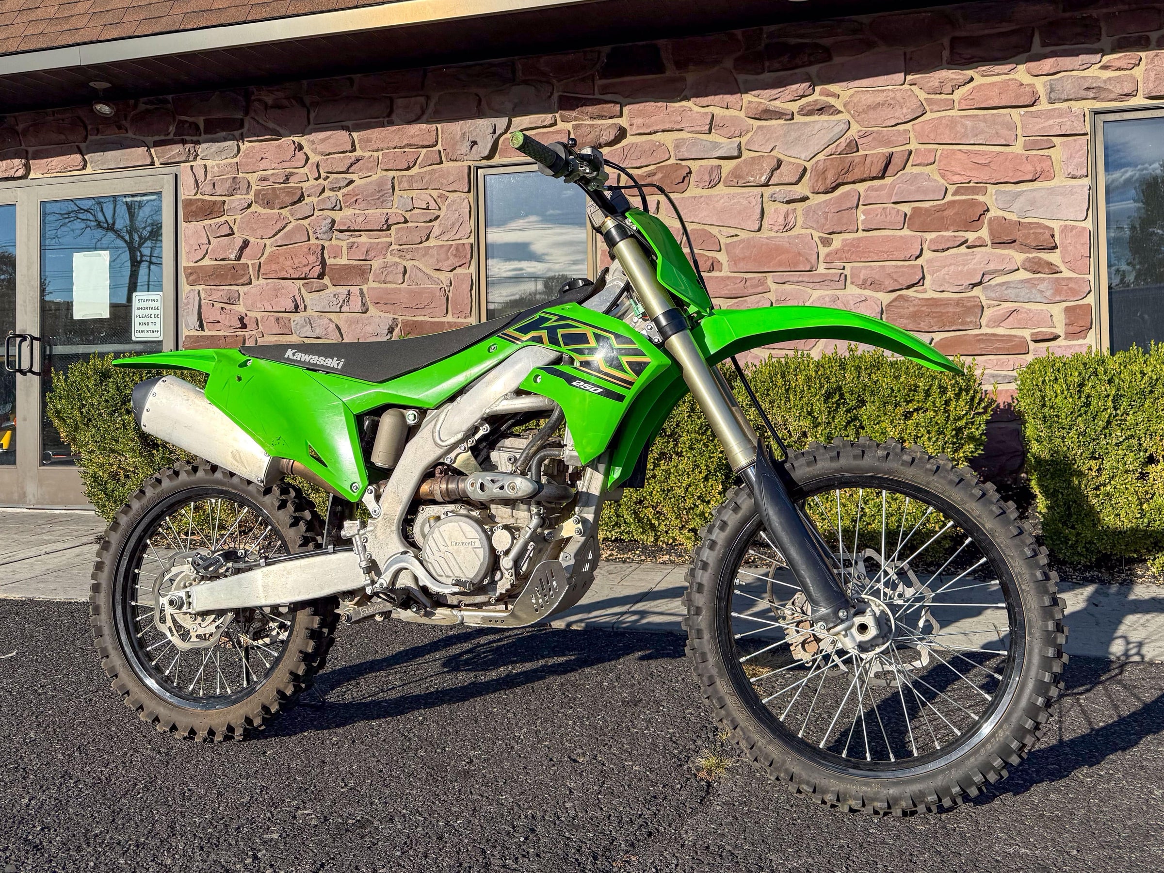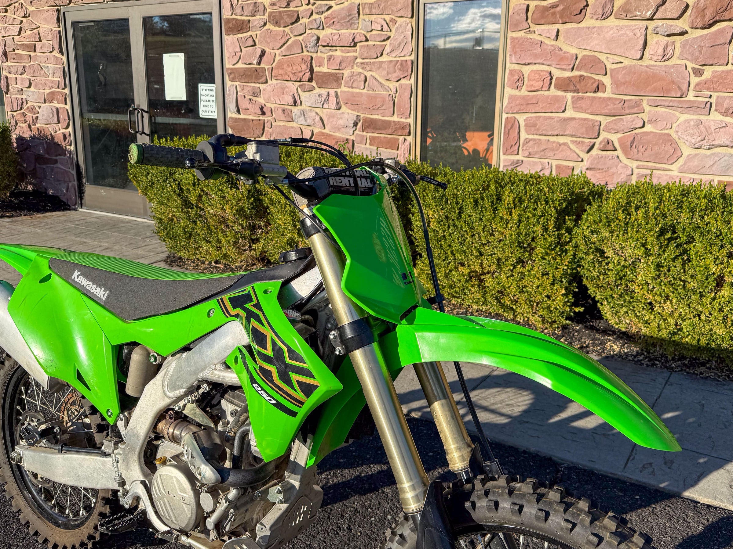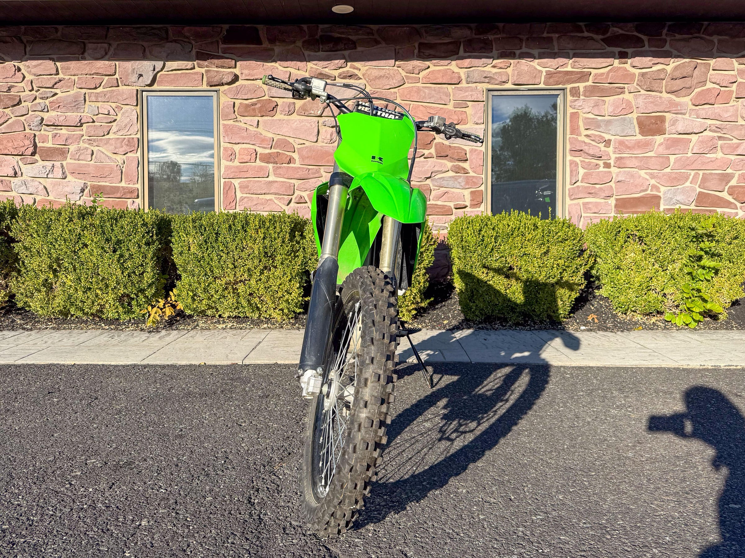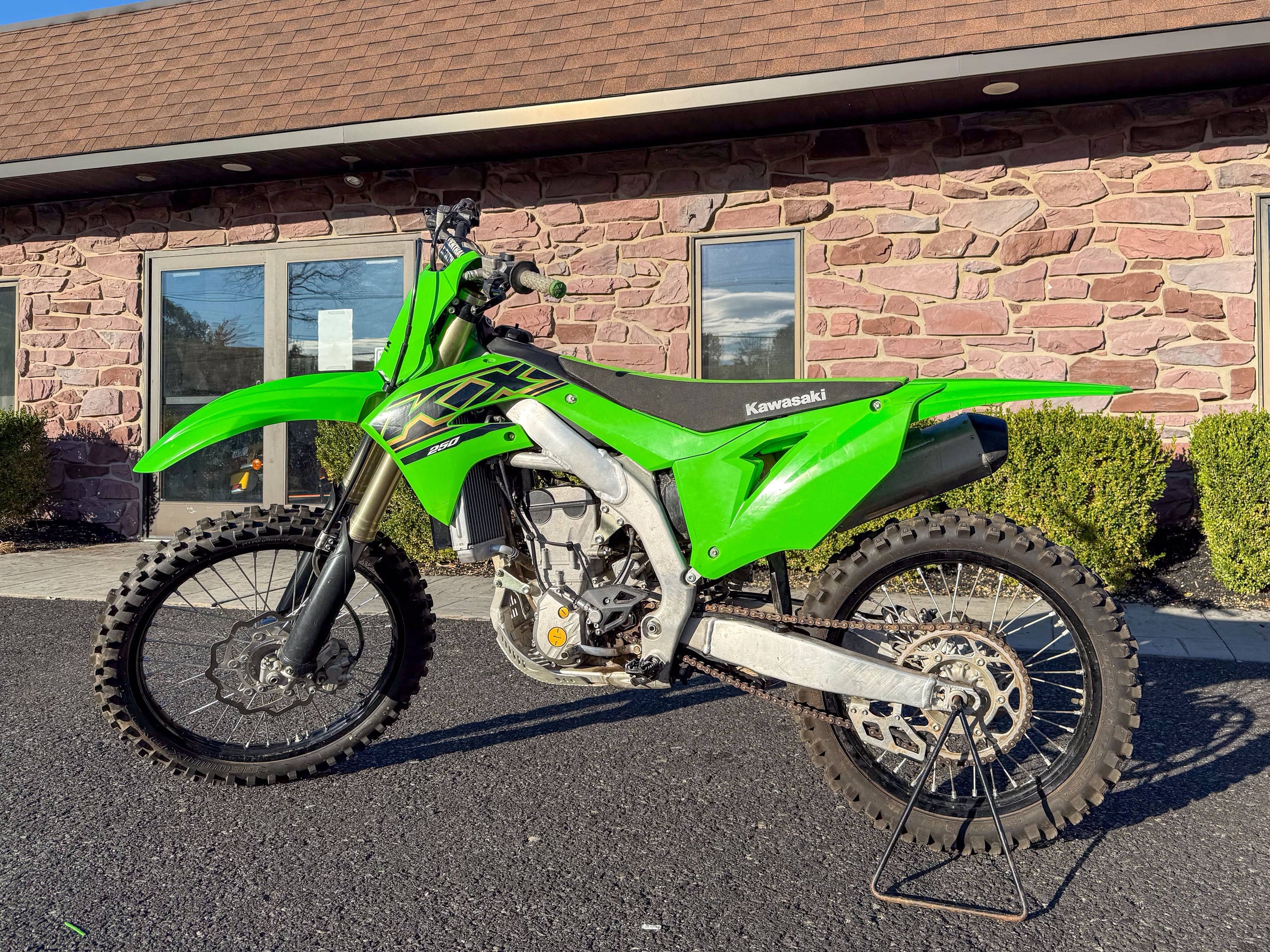Motor monocilíndrico de cuatro tiempos, refrigerado por líquido, 449 cc, OHC. Transmisión de 6 velocidades. Plásticos rojos y azules. 5186 millas.