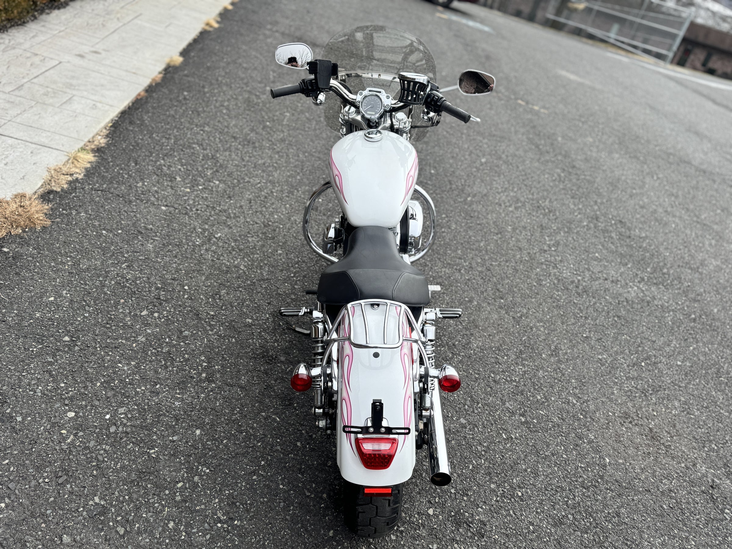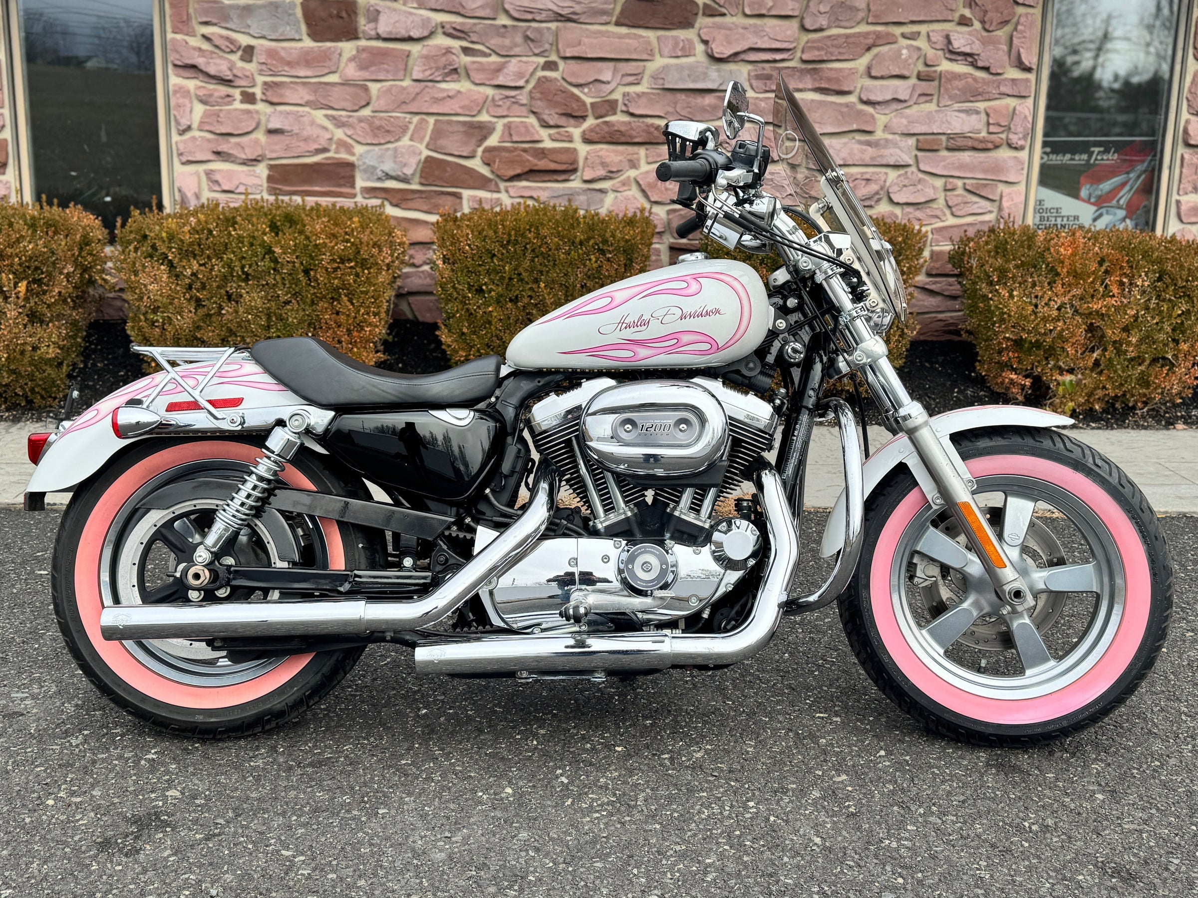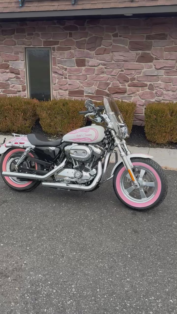 1200cc Rubber-Mounted Sportster Engine. 5-Speed Transmission. Pearl White w/ Metallic Flames. One owner. Clean Carfax. Only 1,897 Miles! Breast Cancer Awareness edition.