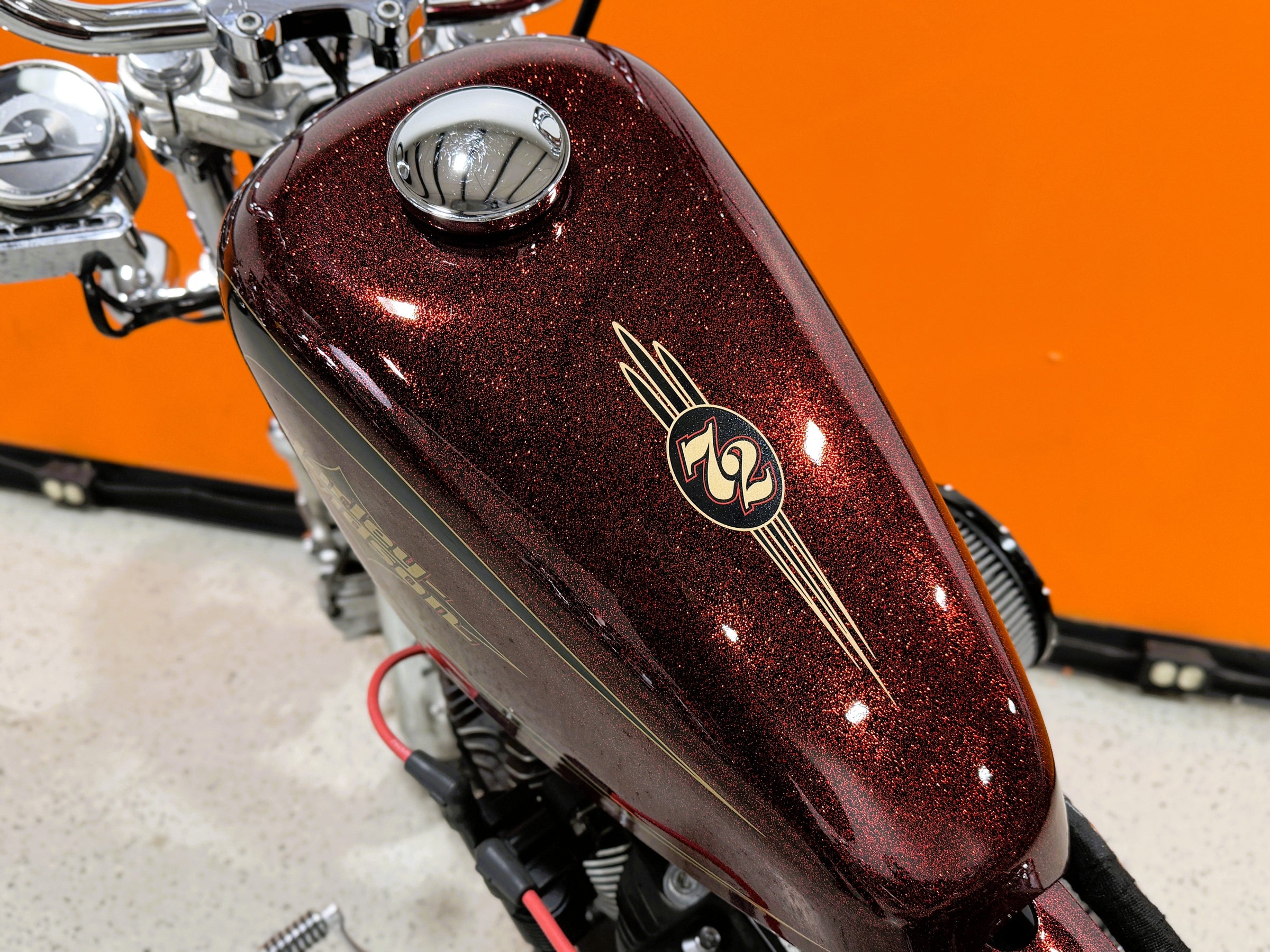 74"/1200cc Engine. 5-Speed Transmission. Red Hard Candy Custom Paint. 19,454 Miles. Clean title. Runs great.