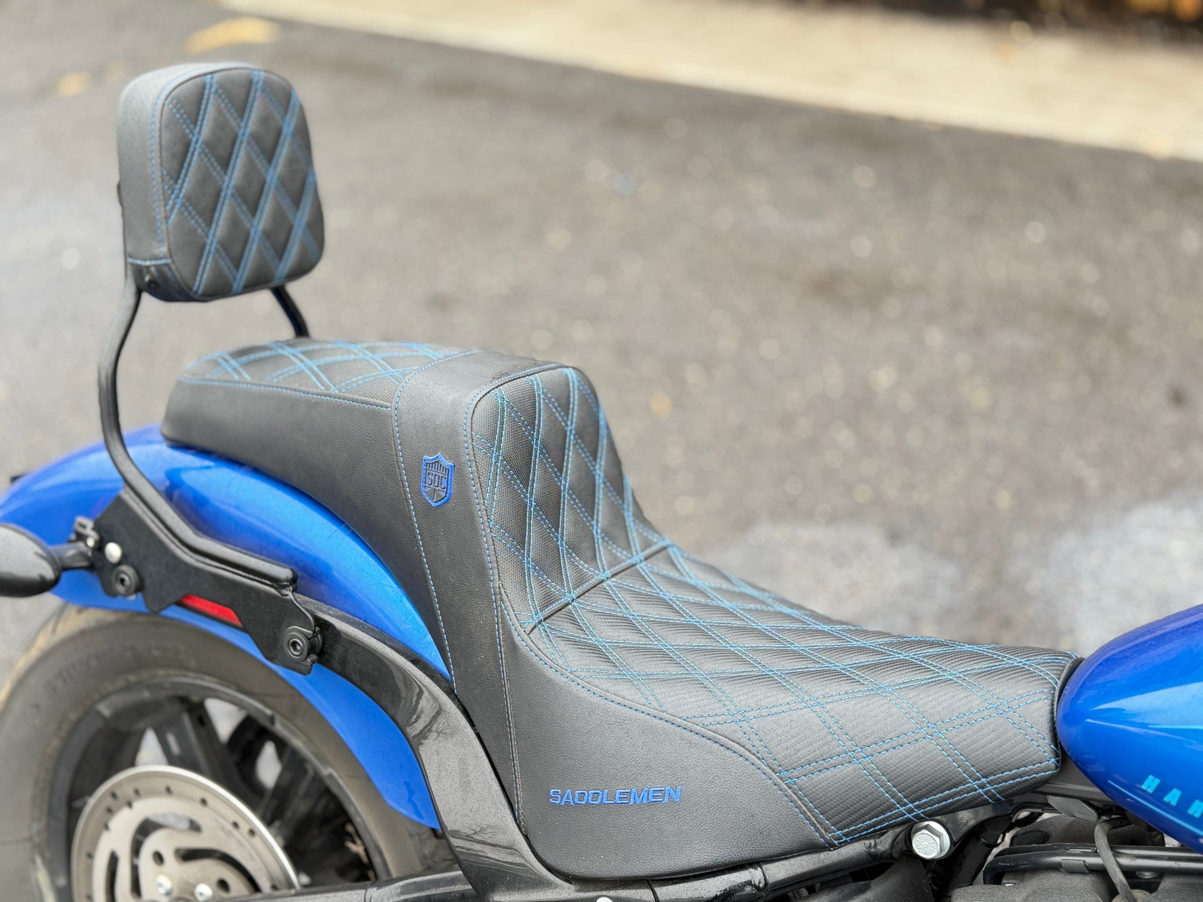 Saddlemen SDC Gripper Blue Stitch Seat with Matching Passenger Backrest